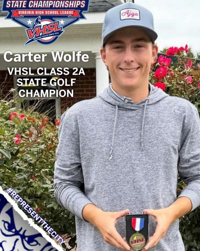 Carter Wolfe capped a stellar senior season by playing on top of his game in winning the 2025 VHSL Class 2A State Individual Golf Championship held on Tuesday, October 20, at Hobbs Hole Golf Course in Tappahannock, Virginia. His three-under par score of 68 was two shots better than Windsor’s duo of Rylin Szymanski and Kylar Holland who each fired a 70.